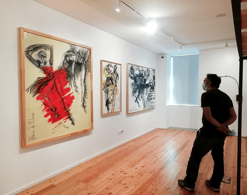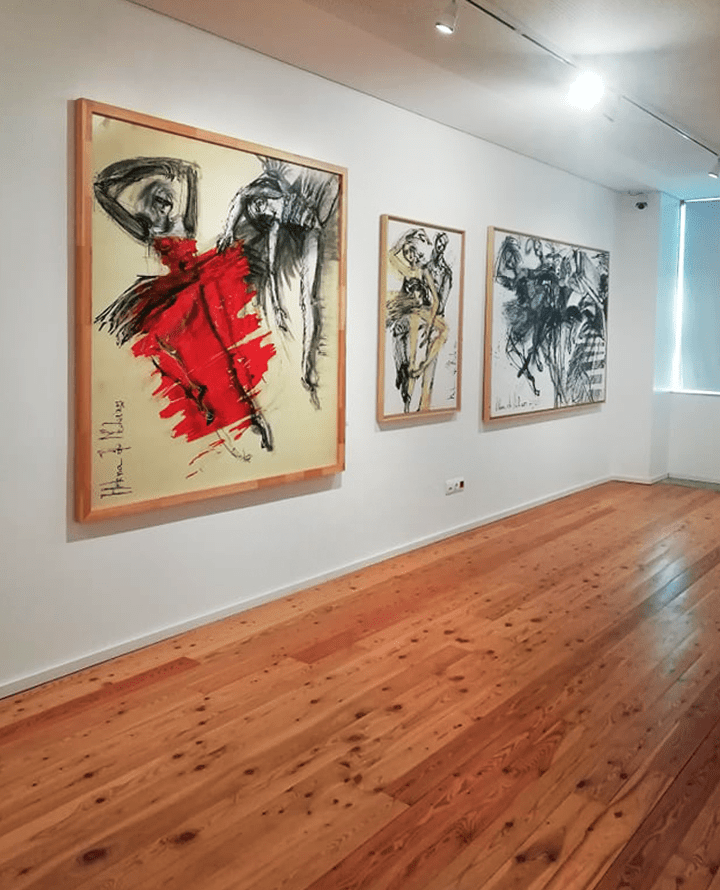“The 7 Women of Minho”, an exhibition that evokes the 175 years of the Revolution of Maria Fonte and that takes place in its Interpretation Center, seven artists of different artistic and technological backgrounds come together with individual ways of feeling and the unveil, in the result of their creative process, the place of the inner storm that is so often the driving force of the whole world. “The 7 Women of Minho” integrates works by seven artists of different tendencies and expressions, with works that explore technologies of sculpture, drawing, painting, photography and video and materials that range from stone to textiles, passing through paper and the expanded exploration of the audio-visual. Helena de Medeiros presented 3 paintings: “In red”, “Adágio”, “Festival of”(in) Significance I”